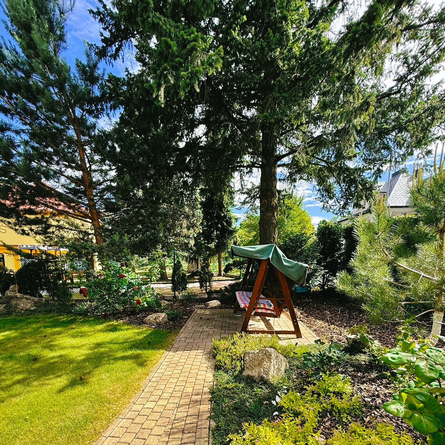 Hned u vily začíná park s více než stoletou historií, ideální pro krátké i delší procházky.