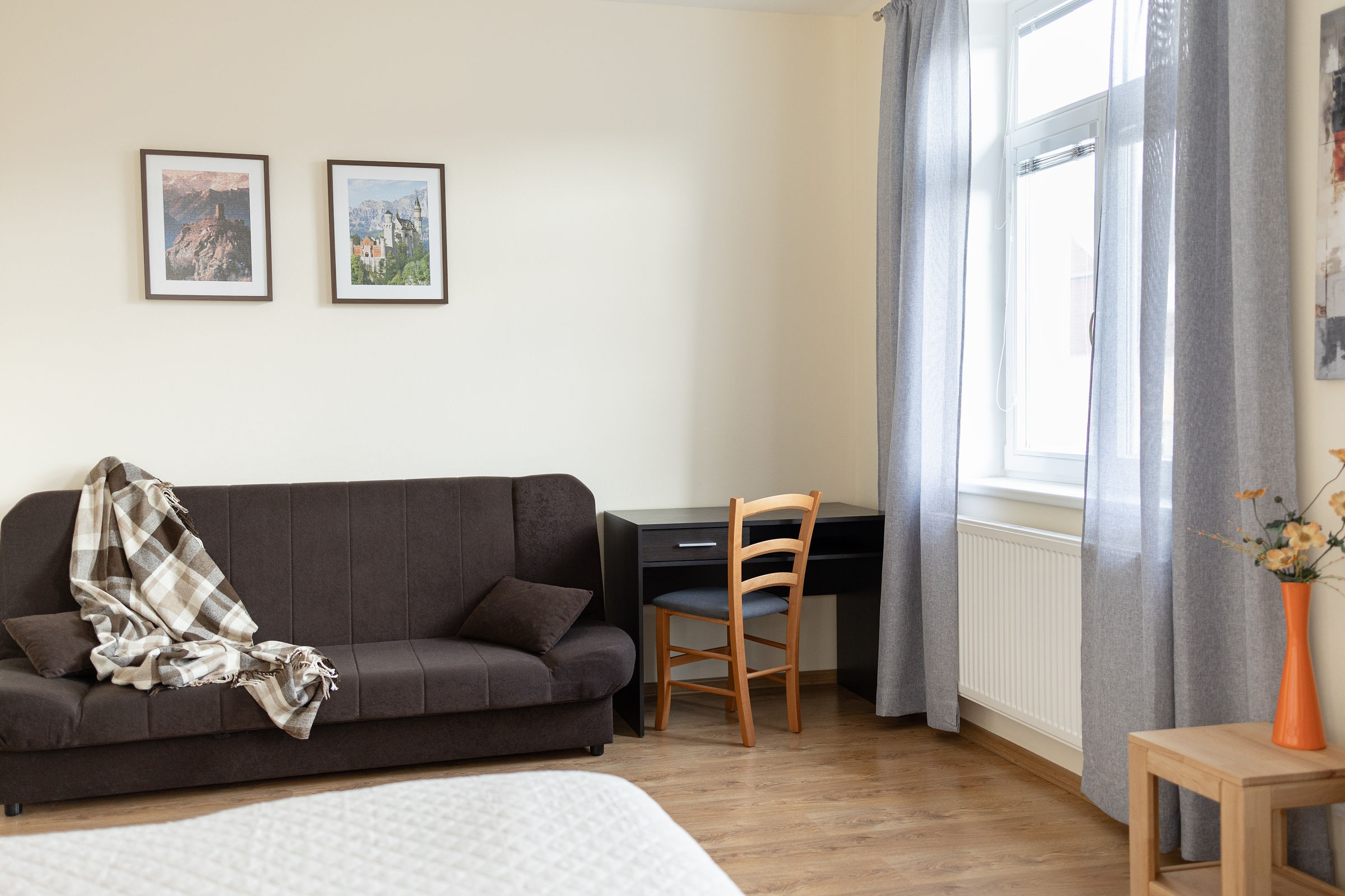 Pokoj Comfort Twin se nachází v 1. patře a nabízí výhled do parku a na klidnou ulici.